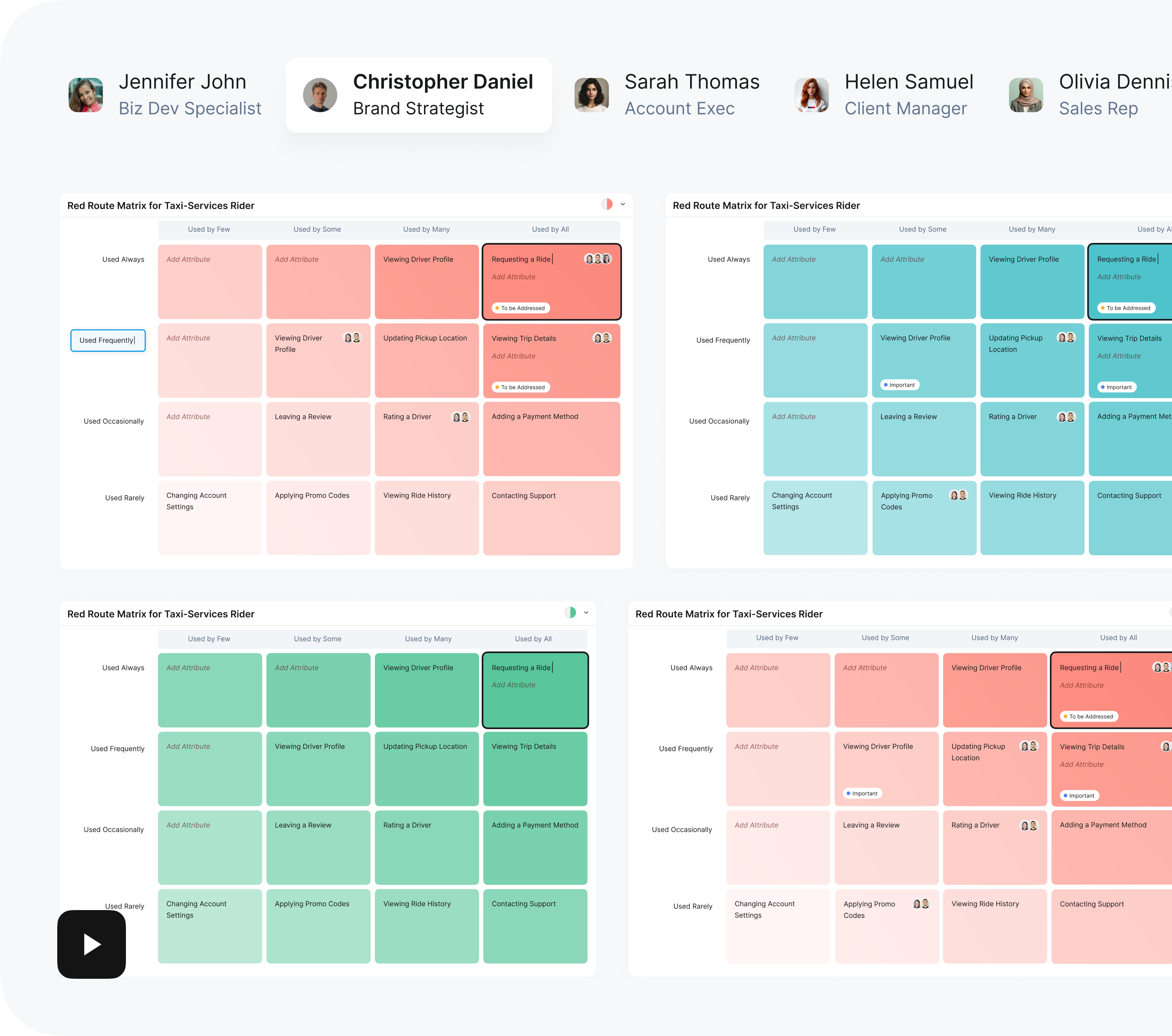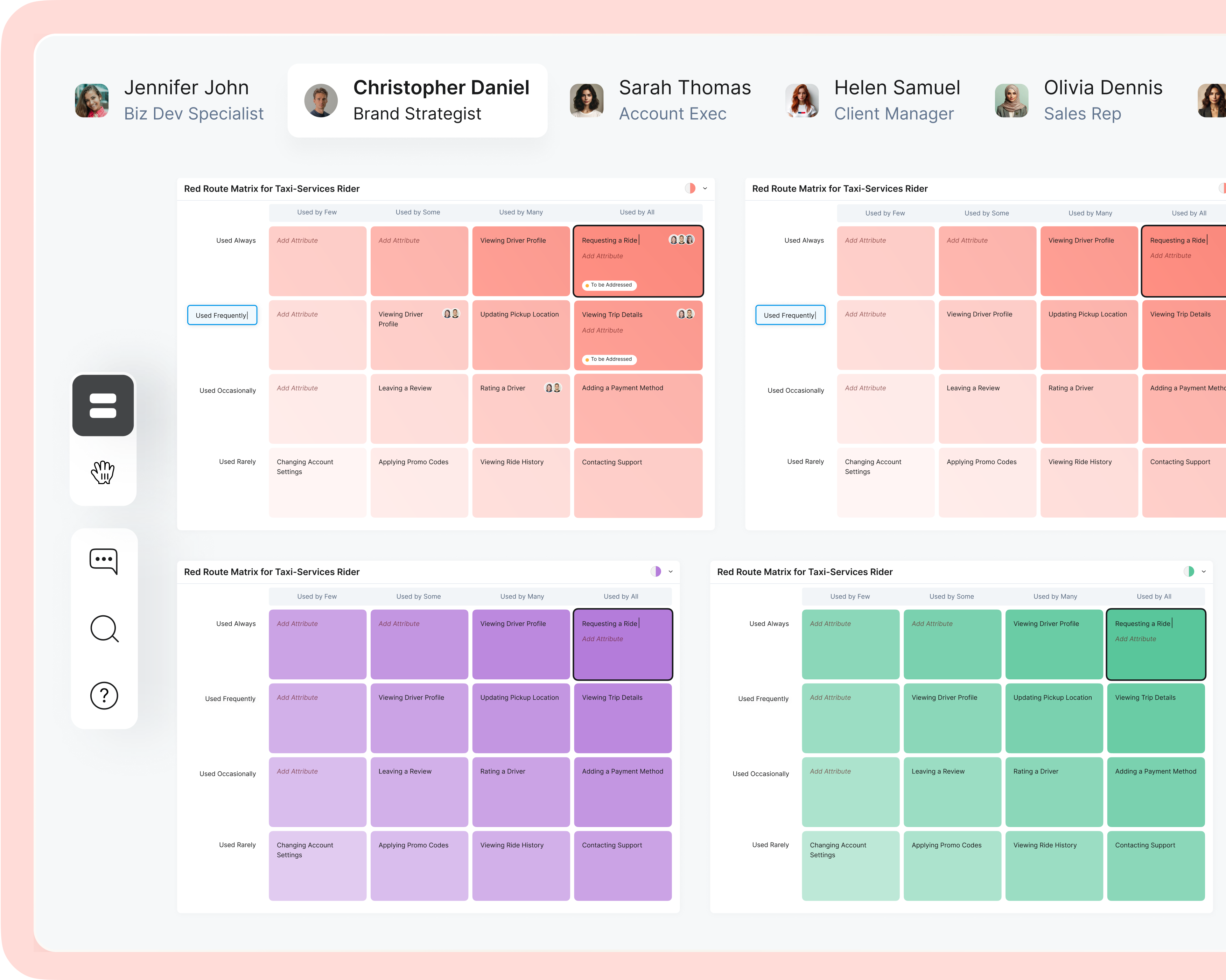 Sketching red routes refers to mapping product tasks or features into a priority matrix based on two variables: frequency of use and number of users who depend on them. By plotting tasks visually, teams immediately see which interactions are mission critical, which are niche, and which create unnecessary complexity. This clarity strengthens decisions about where UX, design, and engineering effort will drive the highest user and business impact.